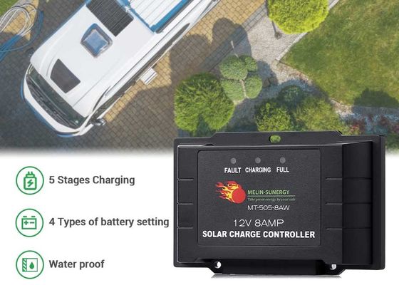 8A 12V 24V Küçük Boyutlu IP65 Su Dayanıklı Akıllı PWM Güneş Şarj Kontrolörü