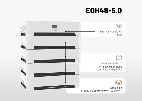 Bu sistem, yüksek verimli MPPT güneş şarj kontrolörüne sahip 5KW saf sinüs dalga inverterine sahiptir ve süper uzun ömürlü LiFePO4 pil paketleri (paketi başına 5,12KWh) ile birleştirilir.Sistem, 20KWh toplam pil kapasitesine ulaşmak için 4 akü paketine kadar yığılmayı destekler., tüm eviniz için istikrarlı bir güç kaynağı sağlar.