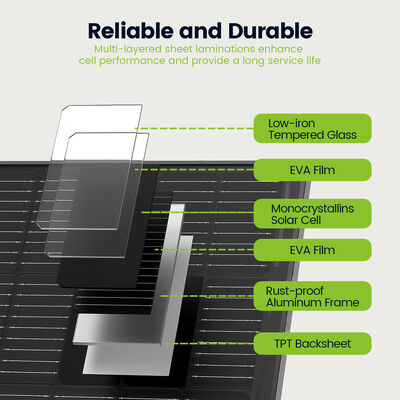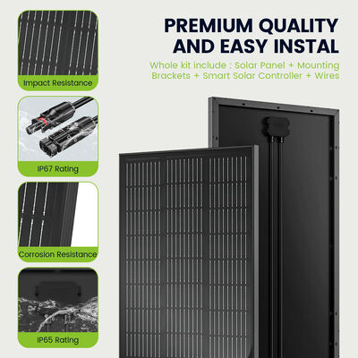 STC altında tam 130W çıkış sağlayan 130W Tam Siyah Güneş Paneli, güçlü enerji üretimi ile şık, birleşik bir estetiği birleştirir. Sağlam 35 mm'lik tamamen siyah çerçevesi, dış mekan elementlerine ve mekanik strese karşı dayanıklılığı garanti ederken, kusursuz siyah üzerine siyah tasarımı performanstan ödün vermeden görsel çekiciliği artırır. Çarpıcı görünüm ve güvenilir gücü dengelemek üzere tasarlanan bu panel, karavanlar, kamp çatıları ve hem verimliliğin hem de görünümün önemli olduğu her türlü kurulum için idealdir.